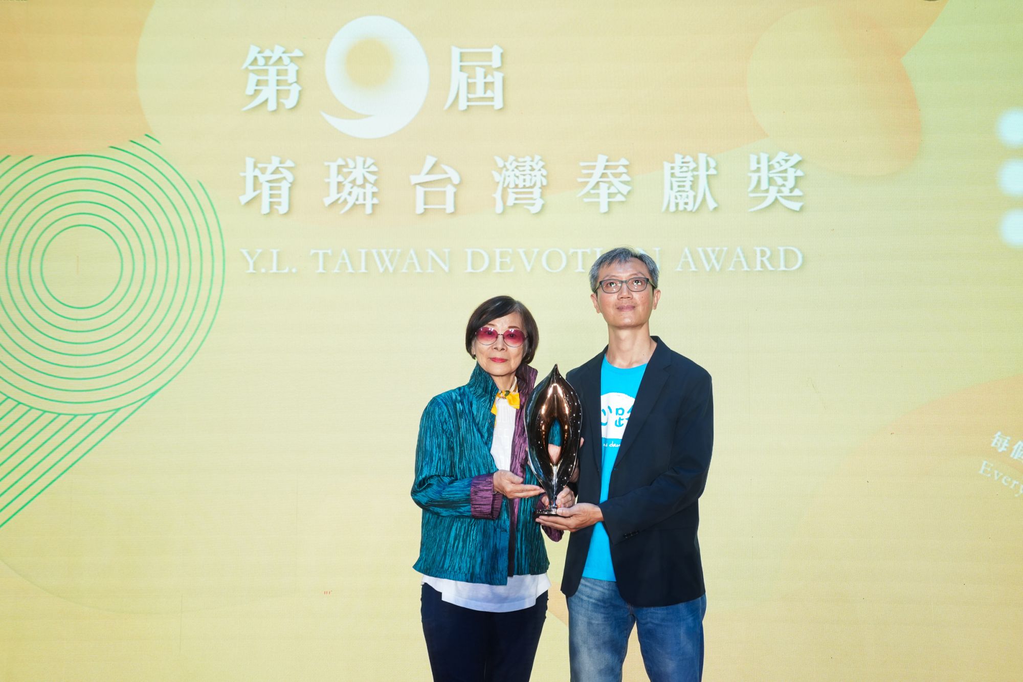 第九屆「堉璘台灣奉獻獎」,心路基金會奪最高榮譽,董事長馮碧華與執行長賴炳良代表心路上台領獎。